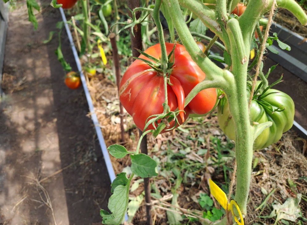 Помидорки замечательные и перец, что на первом фото, очень впечатляющего размера.  Сладкий?