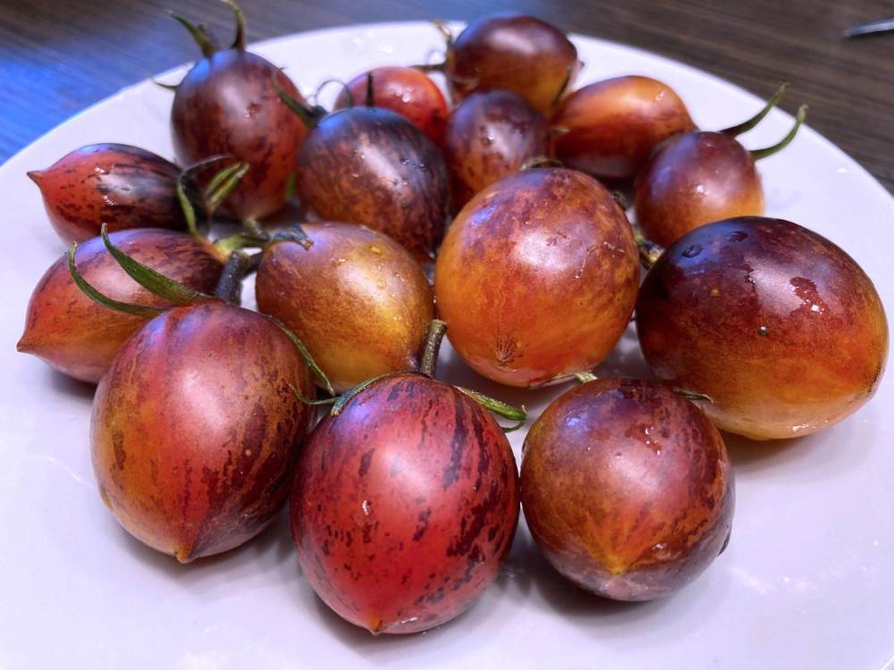 В этом году самые сладкие черри  - Даттерини и Любашка. А от остальных сортов черри я далеко не в восторге. Но Даттерини слишком уж милипизерный, к тому же, с очень грубой шкуркой, я его даже фоткать не стала. Любушка тоже мелковата, но раза в два точно крупнее Даттерини и кожица у неё хотя бы жуётся.