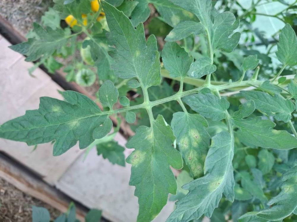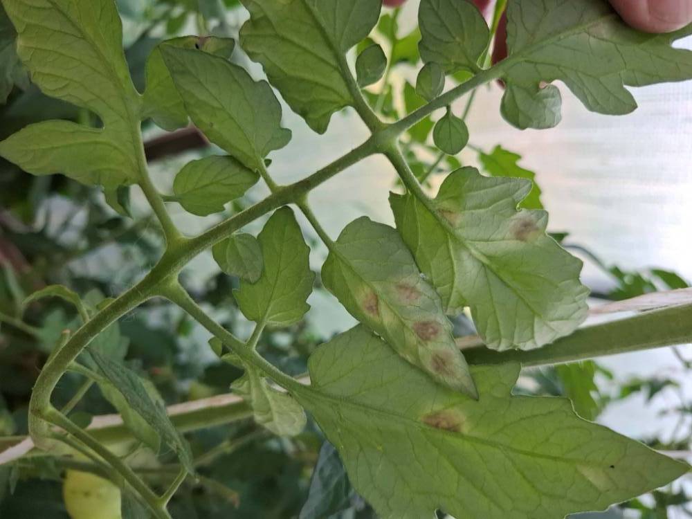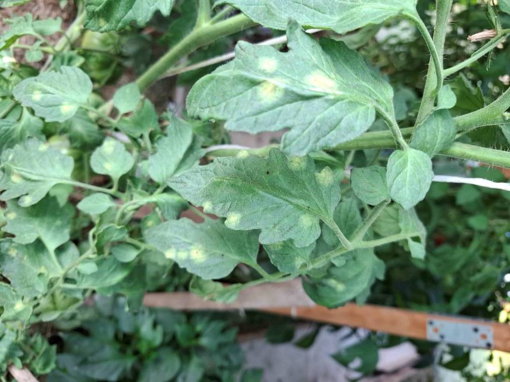 Мальчики и девочки, посмотрите пожалуйста, что за бяка у меня на томатах на листьях в теплице.