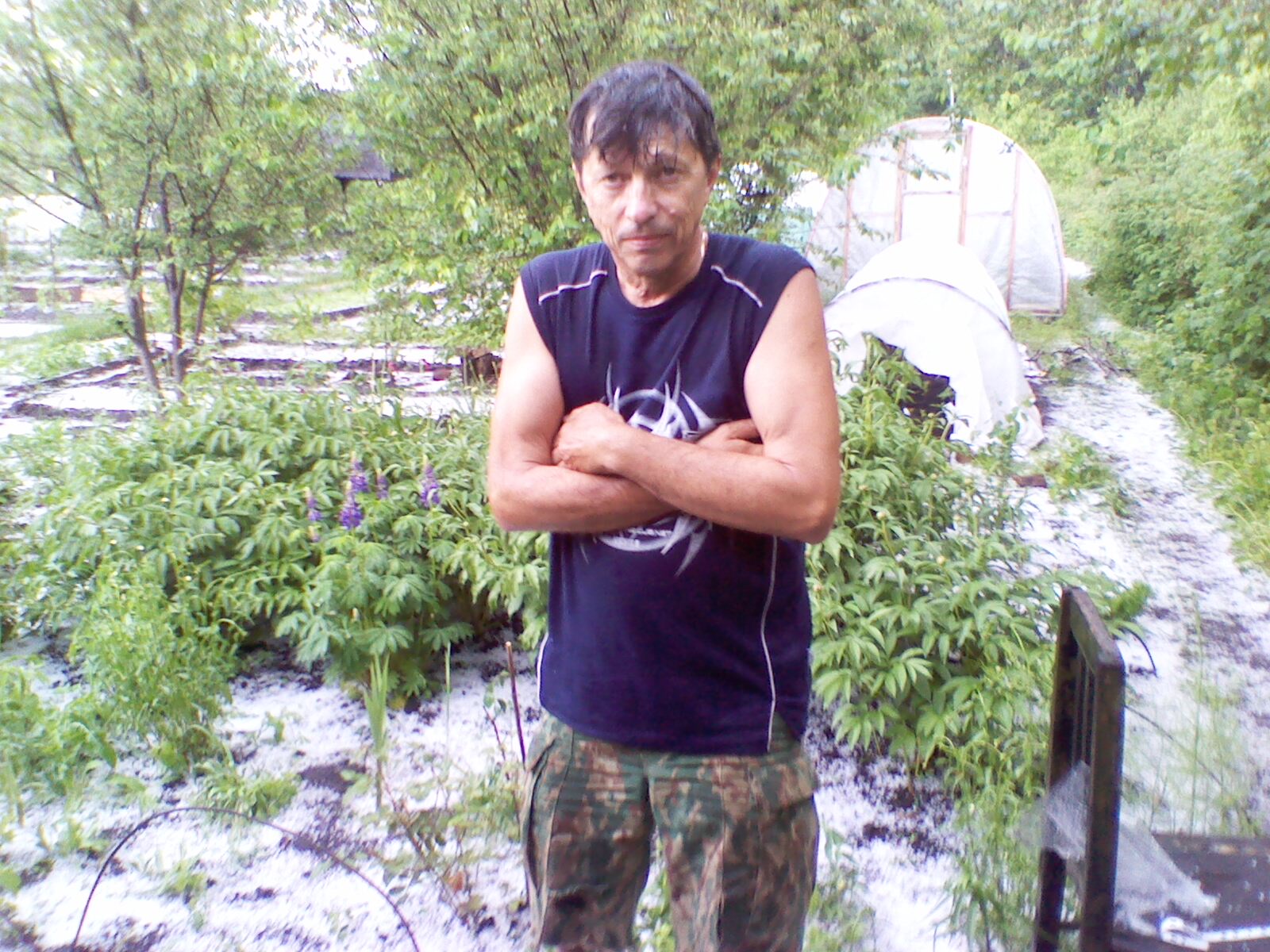 Неля, у нас вчера прошел ураган с градом. См. 5 навалил. что было на улице порубало как ножницами, вокруг куста листья валяются как стружка, лук поломало, короче всё кроме картошки. Вот тебе и эксперимент. Даже пленку пробил.И ни фотика, и ни телефона не было, чтоб заснять этот кошмар.Сажал 30 сортов, где то я уже писал.