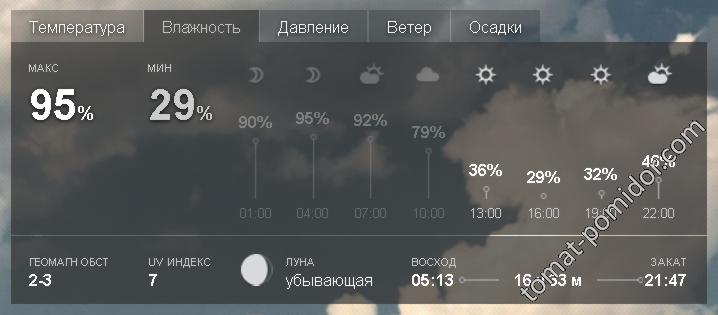 Сегодня дождя не было, вот то, что делается с влажностью воздуха, по часам, в течении суток :mail:.
