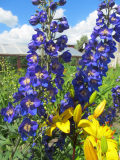 Вот и дельфиниумы прсеяла в прошлом году пакет белых и 2! пакета розовых. Выросло из них всего 4 растеньица. Один этой весной почему то загнулся ???, один действительно белый и ранний- уже отцвел, а один синим вырос :o, но один все же розовый! :mail2: Розовым конечно с натяжкой можно назвать, скорее розовато-сиреневый, но красивый! И такие цветки крупные!