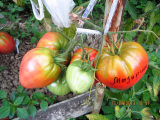 Ой, Аленаааа! Я в сердцах буду разбираться только на будущий год, когда выращу вот столько  :hey: сердец! ;D ;D ;D А твой купленый похоже красный- надо искать среди красных, и присмотрелась- похоже даже в полосочку. Красивый томатик. А на вкус как? Понравился? И семечки собрала. Посади, а я если в этом году такой не выращу, к тебе запишусь на семечки :D