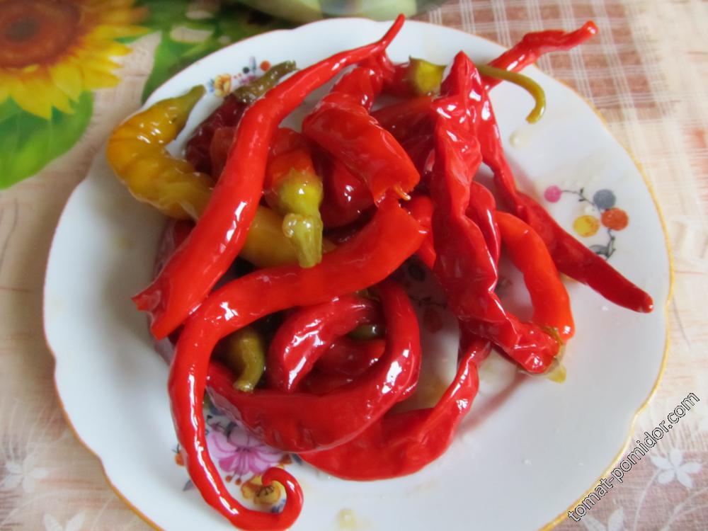 А я сегодня наконец то получила банку с консервированным Турецким перчиком. А то народ уже любопытство проявляет, что да как... а мы и банки потеряли ;D. Оказывается они в деревне в погребе остались. И муж, конечно, привез самую большую, трехлитровую :D Открыла ее, и знаете очень даже понравился перец. Во первых сразу духом- так приятно из банки пахнуло :yep:. А потом , когда попробовала- понравился этот перец даже больше, чем обычные сладкие. Обычные бывают почему то при мариновании немного с горчинкой а эти- нет, просто сладкие, и остринка от чеснока и уксуса- немного клала. И, кстати, сочные, стенка не особо и тонкая, как при разрезании свежего показалась.Немного напрягают семена, но я разрезала перец вдоль и семена все просто сдвигала в сторону, а муж вообще ел прямо с семенами :o. Они тоже промариновались. Ему тоже понравился этот перец больше, чем консервы из сладких толстостенных. Вообщем  :yep:, даже пожалела, что в этом году не посадила. Но ведь столько новых сортов перца у меня в этом году, для Турецкого и места уже не хватило.  :- Но на будущий год запланировала. Мне этот перец и паприкой понравился, и консервированным! :yep: