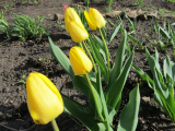 Зато цветы долго цветут- сначала неделю распускаются, потом недели две цветут. Красные тюльпаны прошлогодние похоже все съедены мышами, а это уже осенней посадки. А желтые я не выкапывала, так они даже лучше стали, раскустились.
