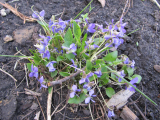 И я выкопала дикую фиалку и посадила в свои цветочки. Вот только какая она- я думала, что рогатая, а посмотрела, вроде похожа на опушенную.