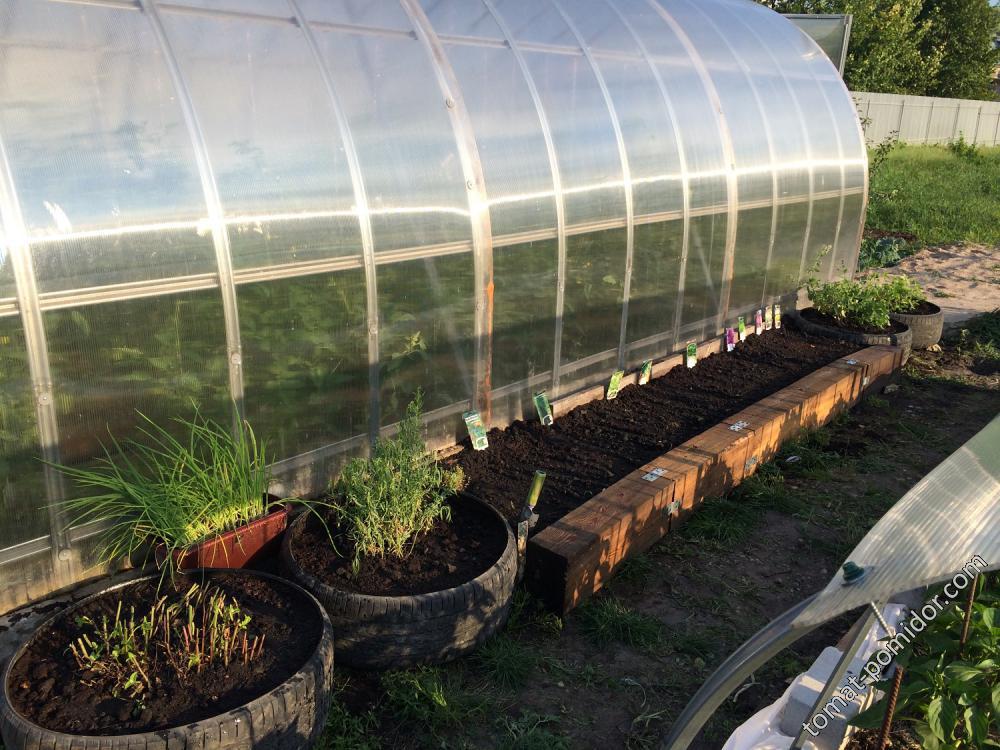 В покрышки посадила ( слева на право) манарда, тархун, мелиса и мята  :-[