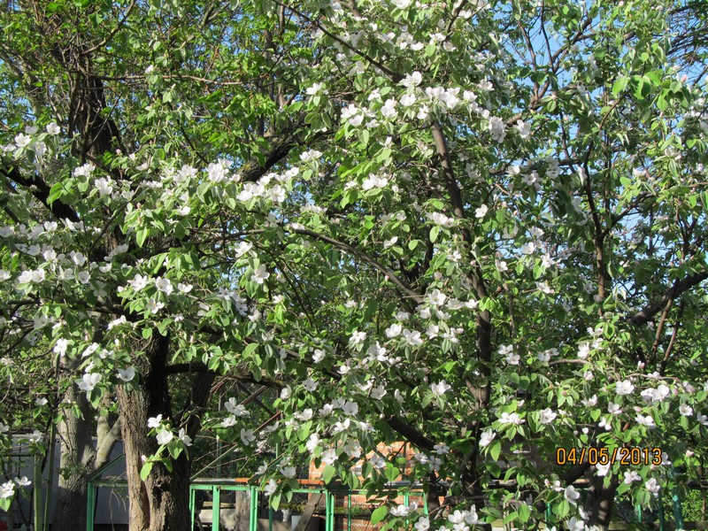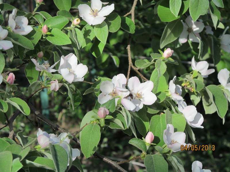 Зацвела айва, да так, блин, сильно (у меня еще в морозилке три пакета с ней). Еще цветут яблони, а остальное  отцвело... Черешни небольшие уже висят.