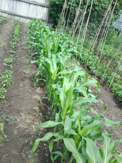 Моя кукурузка кума сказала что это бондюэлька растет маленькими кочаньчиками и очень сладкая . В этом году первый раз сажала кукурузу пророщеную очень понравилось , так быстро начинает расти . А еще я к ней подсадила фасоль вигну , посмотрим что из этого получиться .
