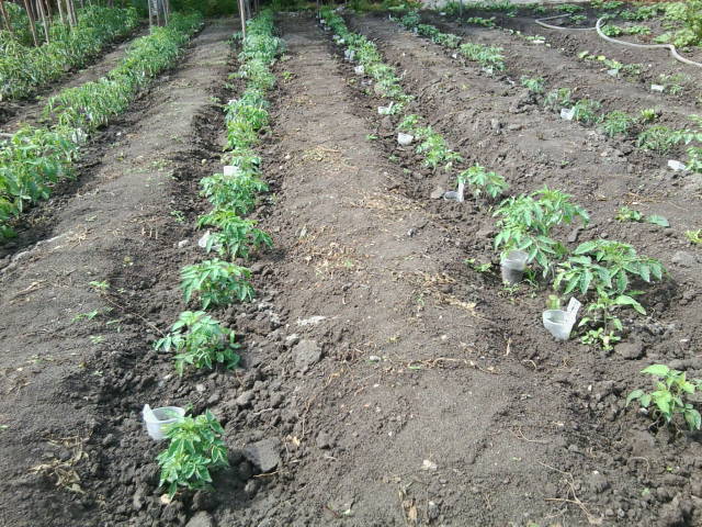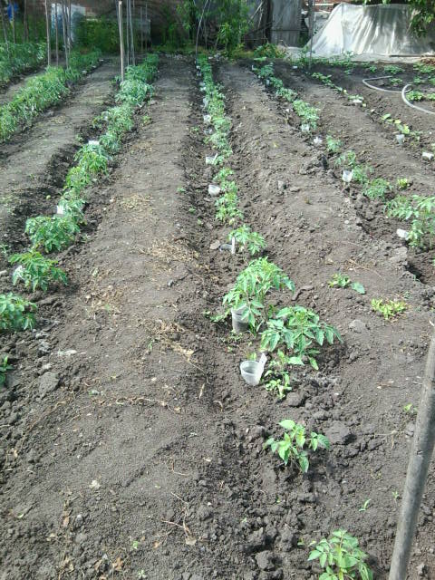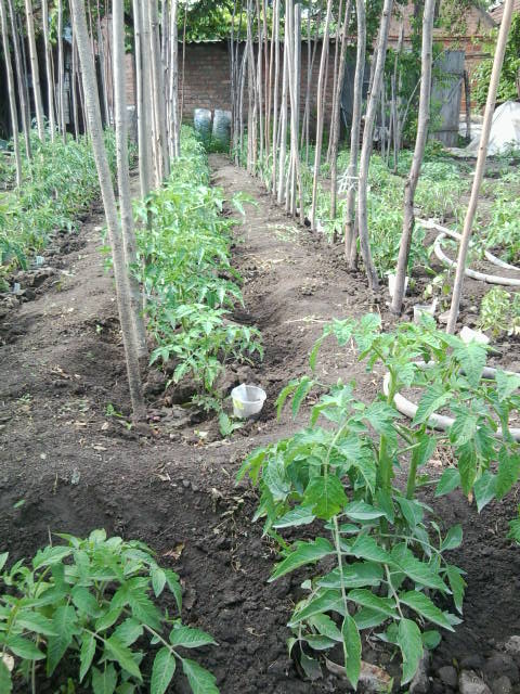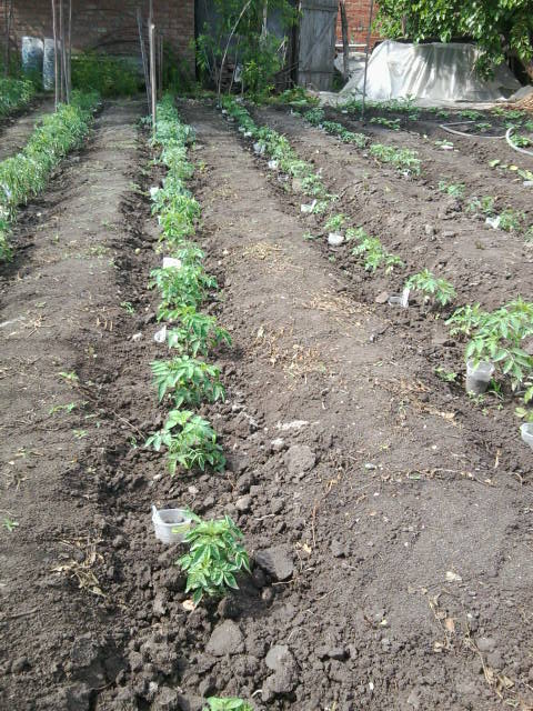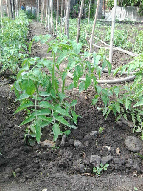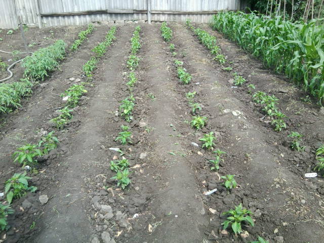 За помидорки что хотела сказать ещё и забыла . Что я их сажаю рядами кума взглянула и сказала что редковато сажаешь можно и немного погуще . У меня посажено в этом году 10 рядов по 30 кустов в ряду . А одна сотрудница на работе подсказала что она сажает сдвоеными рядками т.е. два рядка одна дорожка . Я так посчитала что таким образом я могу свою плантацию томатов увеличить ровно в двое . Для меня это более чем дастаточно . Но на следующий год попробую такую практику .