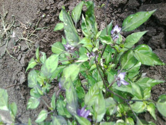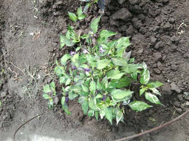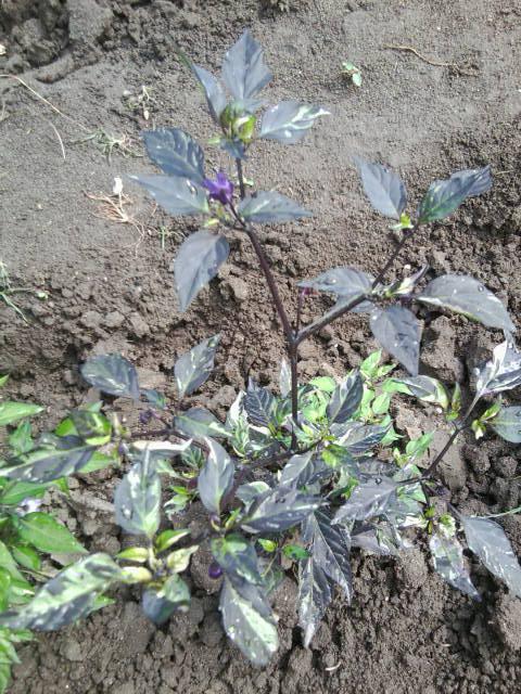 Ну а это чудо острый перчик Тролль. Самое удивительное что из одной пачки повырастали совсем разные кустики перчиков , но все цветут сиреневыми цветами.