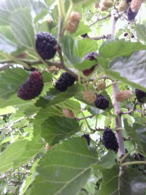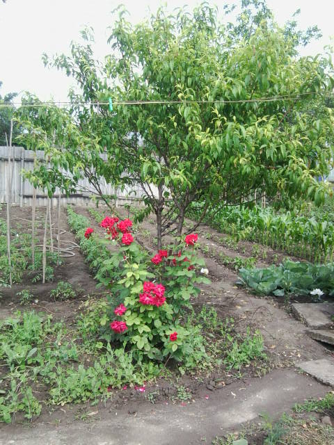 Так же у меня растет ранняя капустка и всякая зеленушка . А на улице перед домом картошечка . Ещё мне от прошлых хозяев достался один куст  смородины ,персик , абрикоса , орех и тутик (шелковитца) Я из него сегодня варила варенье . Кума сказала варенье из тутика хорошо от давления кушать