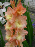 Этот гладиолус практически единственный, что остался от моей старой коллекции... А какой у меня был Белый медведь! Нечаянная радость, Мамин поцелуй, Мерцание бабочки, Джагмо Саккурис.... В город возила охапками.  Безумно жаль. Зареклась с гладиолусами не связываться, но не выдержала. 5 лет  назад начала восстанавливать коллекцию, но снова потери, прошлым летом одни слезы... Но без гладиолусов свой сад уже не представляю, это единственный цветок, который я без сожаления срезаю и несу в дом.