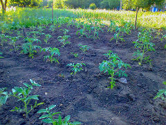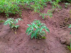 ...Или другой способ..  На высаженное растение томата  сразу  надевается  "опалубка" - это может быть  пятилитровая  емкость  из-под воды..По  мере роста  растения эти емкости постепенно заполняются  хорошим перегноем...в них же удобно вносить подкормки..грунт в емкостях  быстрее прогревается...    Это можно применять  как в теплицах.. так и в открытом грунте  под временным укрытием...