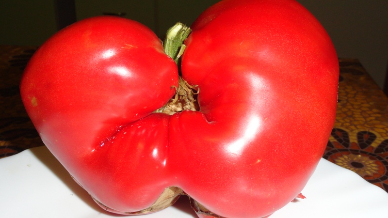 Ирушка, это Яблочный липецкий :-X.  Посажен на семенаи14 февраля, в теплицу 26 апреля. Это первый плод в первой кисти. Вот даже и незнаю, что думать :-\