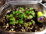 Лен!  Пересей.  Толку как правило не бывает – если снесешь голову растюхе.  Хотя вот бывают исключения.  Вот этому оторвала голову, а он и без семядолек дал настоящий листочек: