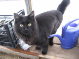 Специально назвала так, чтобы никого не боялся. Так и получается. Остальные три кошачих зверя боятся всех, а он ни кого. Ходит к коню в туалет и поиграть. С Лаской (собака) играет. Пока 5 месяцев. Сделали ему операцию, была грыжа. Очень активный кот, как нам нужно.