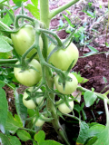 - интересные черрики желтого цвета, плотные хрустящие шарики диаметром 2 см. Картофельный лист, рост был около метра, пасынков немного, кисти небольшие 8-9 шт. Семена не собирала, но, возможно, попробую еще из прошлогодних семян (от Ангелины), может получится более настоящее Летнее солнце.
