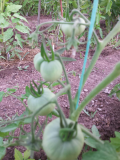 Все томаты выращиваются в ОГ, индеты под "крышей" из укрывного, деты на совсем открытых грядках. К сожалению, на даче удавалось быть только на выходных, поэтому большого внимания агротехнике уделить не получалось. В целом, урожайность оставляет желать лучшего, то сильный ураган потрепал, то жара и засуха, то, возможно, вовремя не подкормила... В общем, вырастила томаты не благодаря, а вопреки.
