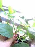Растила как огурец по сетке, а потом подвязала в авоське, которые раньше были. Но это единственная приличная дынька. Дальше пошла мелочь, но сладкая. Семена с нее брать нельзя, кто-то на форуме писал, что переопыляется с огурцом. :-[ :-[ :-[ А в 2014 году  купленные семена на Хупте дыни Карамель, вообще не дали плодов и цвести стали к сентябрю. :( :( :( Но там всё крот перекопал в теплице, огурцов то же не было.  :'( :'( :'( Приезжаю в выходной, а корни в воздухе висят, подсыпаю, но растения уже травмированы. :-\ :-\ :-\