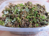 Семена по размерам разные- есть покрупнее, а есть совсем мелкие, сеять буду все, Ведь совсем не знаю, из каких семян растет голубика. Замочила семена на недолго в воде, они практически все утонули в воде, значит не пустые. В плошку насыпала одного торфа, сверху нетолстым слоем- мм2 песок речной и разлила замоченные семена по поверхности песка. Потом их спичечным коробком придавила в песок и укрыла влажным мхом. и на стратификацию в холодильник как пишут на 3 месяца. Стратифицировать советуют во влажном песке или в мохе, но семена то меленькие как их потом выковырять из того песка или мха :D. Поэтому и как бы посеяла сразу в нужную для этих семян землю, но по влажному песку и прикрыла мхом. Если всходы появятся, то прямо в этой плошке и расти будут!