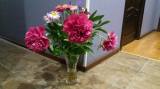 Мой маленький отчёт по выходным.В пятницу всей деревней тушили пожар на соседнем участке,удалось удержать огонь в зоне одного дома до приезда пожарных,до соседних  построек менее 10 метров,страшное зрелище.После победы над огнём празднывали до 4 утра.А с утра в поля.Груши,яблони и чёрная смородина в какой то бяке,пока оборвала листья больные,сколько смогла,надо опрыскать,а чем безвредным для плодов незнаю :dnt:Помидорки продолжают завязываться,в основном индеты,а вот из детов только золотое сердце вяжет,остольные не хотят.Сняли первые огурчики,на перчиках появляется множество плодиков.Ежевика и клубника пока зелёные.Сад весь в цвету,петуньки,пиретрумы,ирисы,ландыши,дицентра,каприфоль,вечерница,шиповник и мои любимые пионы,запахи :hey: