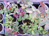 Далее каждый черенок  обмакиваю в Корневин , нижние листики удаляю , невызревшую верхушку удаляю, листики укорачиваю и втыкаю в стакан. Присыпаю черенок почвой , заношу в теплицу и накрываю обрезанными бутылками , 200гр. стаканчики входят по 4 штуки под обрез бутылку. Дальше наблюдаю, кот. почернели , выбрасыва. Остальные понемногу и нечасто поливаю. Укоренение идет не меньше месяца, редко быстрее. Когда вижу , что черенок тронулся в рост и просвечивают корешки , вытаскиваю из под бутылки , но оставляю в теплице.
