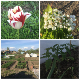 Помидоры мои приходят в себя потихоньку- все под укрывным стоят, осталось 2 теплички замульчировать, многие кустики стоят с цветами, перцы тоже под укрывным! Огурцы я уже пересеивала, тыквы, арбузы, дыни не всходят, хотя садила замоченными. Морковка и та всходить не хочет! А вот кукуруза наоборот вся захотела! Капуста у меня получилась непонятно что! Посеяла я семенами в землю и укрыла укрывным по дугам( низким), и не заглядывала в нее долго, вчера открыла- а там капусты разных сортов на весь Энгельс и его окрестности! Пересадила- часть оставив под укрывным, часть в грядку, большую часть выкинула))) К слову сказать- капусту мы едим мало, садила ее первый раз! И вот что получается- что не ем, то взошло лесом! Сегодня посмотрела на грядку- половина капусты лежит на грядке, а половина прямо стоит- и чувствует себя хорошо!