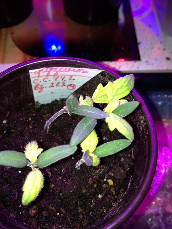 Интересные помидорки, как будто мелированные, следующий лист должен быть зеленым...наверное... :D