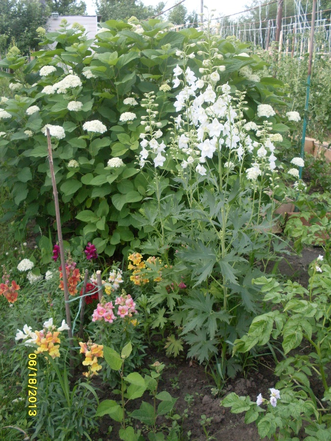 На даче зацвело наверное почти всё что может цвести :), вот и дельфиниум белый поддерживает бурное цветение вместе с Галочкиными Львиными зевами.
