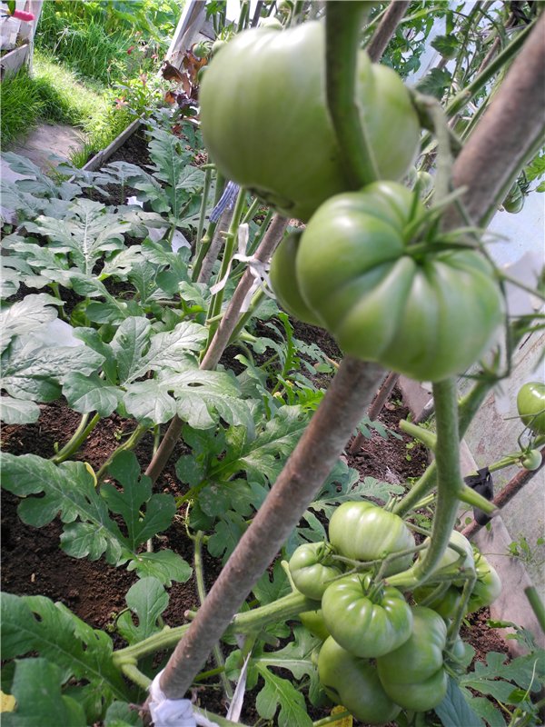 .......Зато есть замечательный сорт от Наташи Дрыжаковой,Сибирский Хоттабыч,куст как у Аурии,лиановидный,я его под потолком теплицы пригнула,прищипывать не стала.