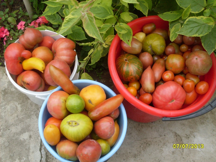 Вчера была на даче, собрала огромный урожай кабачков и вот помидорки. Сделала много фоток созревающих и начавших этот процесс  томатиков.