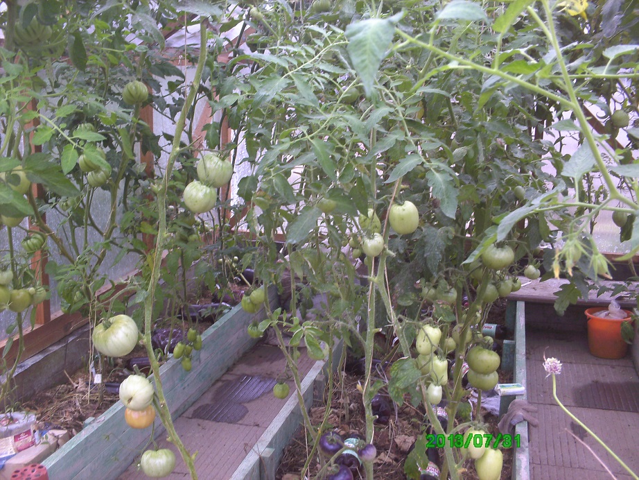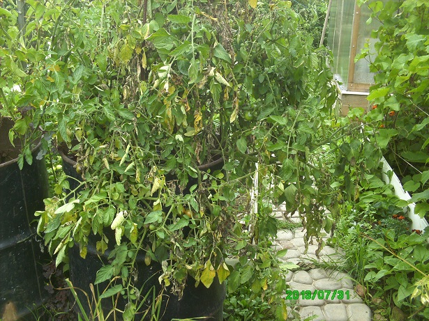 Нелличка!  Нормальные кустики в теплице, хоть и подстриженные. Вроде, пятен подозрительных на стеблях и оставшихся листьях не видно. И помидорок на кустах завязалось много, если действительно погода еще простоит нормальная, должны вызреть.