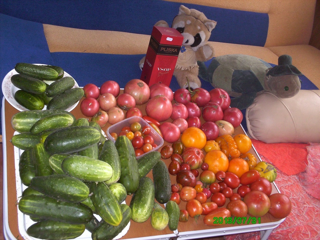 Огурцы естессно новые хорошенькие нарастут.А помидоров куда тебе сразу много зрелых? ::) У тебя сейчас и так дел много по приезду,а то пришлось бы срочно переработкой урожая заниматься :hid:
