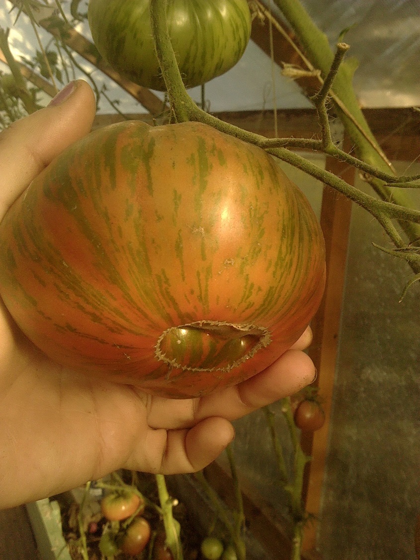 Полосатый шоколад и шоколадно полосатый тоже мой размерчик (так и не поняла одно и то же или нет,т.к. по виду не определить,а спеет один уже давно,а другой зеленый...)