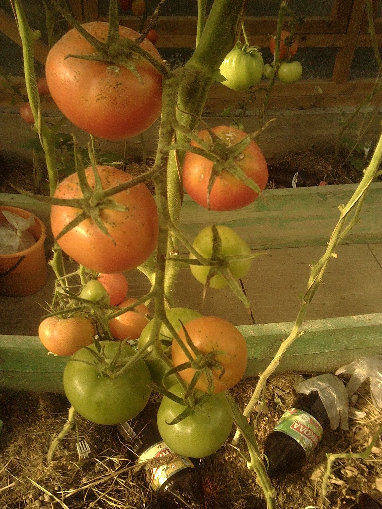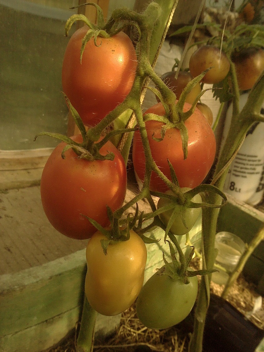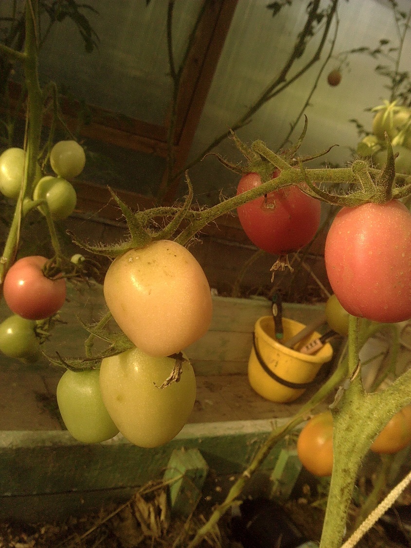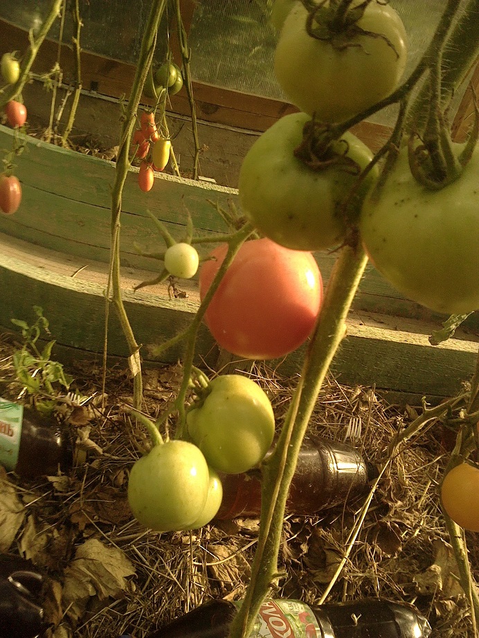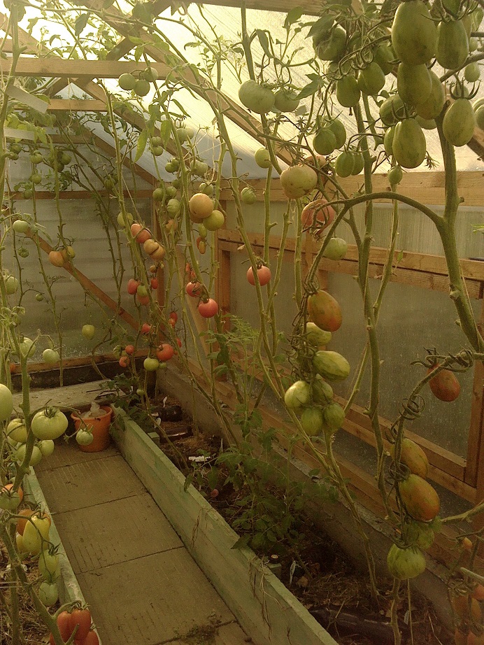 По сравнению с прошлым годом все прошлогодние сорта мельче и сами растения меньше. Я это связываю с тем,что не меняла землю в теплице,а так как не использовала никакие удобрения и подкормки кроме травяной бражки,растениям не хватало питания...