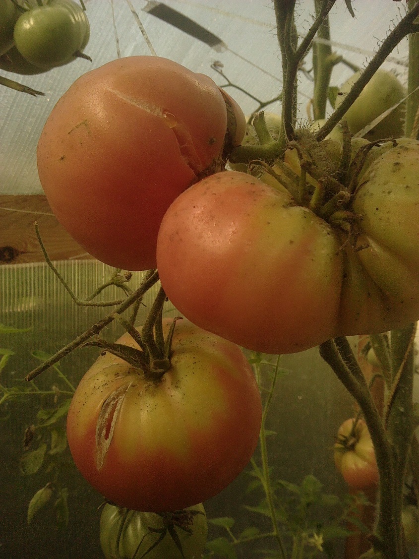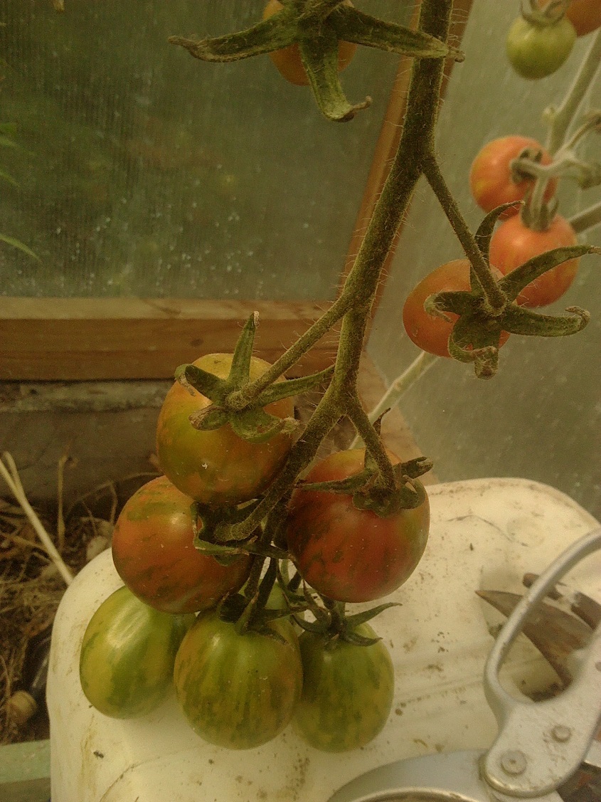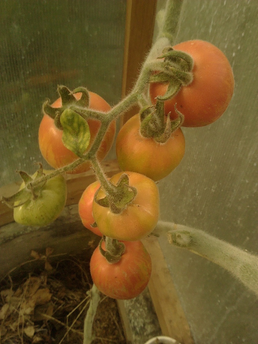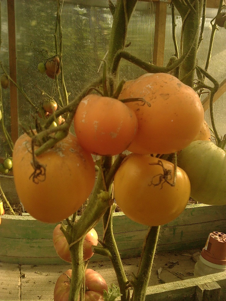 По сравнению с прошлым годом все прошлогодние сорта мельче и сами растения меньше. Я это связываю с тем,что не меняла землю в теплице,а так как не использовала никакие удобрения и подкормки кроме травяной бражки,растениям не хватало питания...
