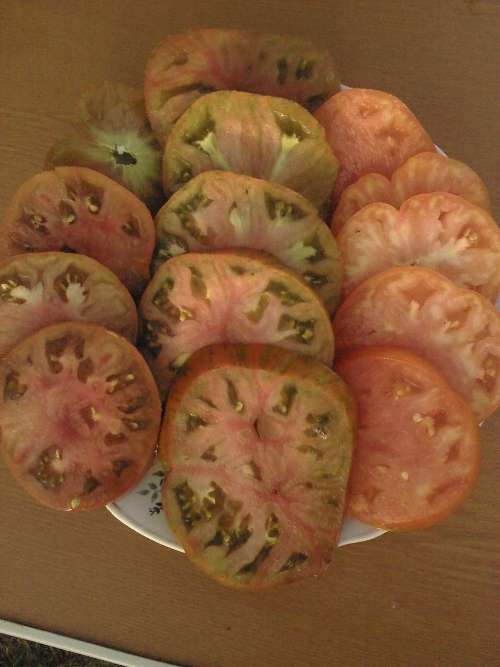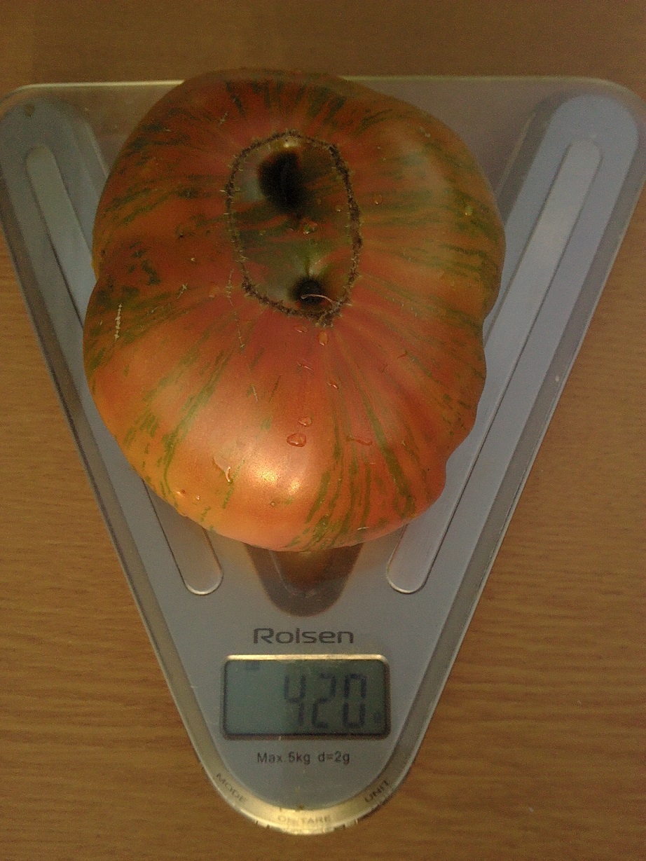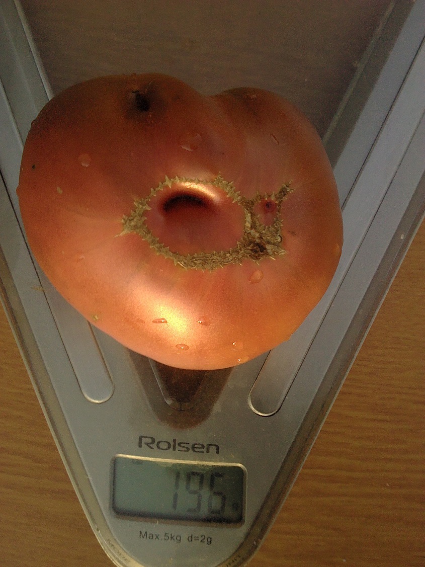 Ирочка,плоды не пробовала на вкус. Навскидку могу сказать что этот слон у меня почему-то всегда на тропинку все вывешивал,сначала сами ветви,потом помидоры... Помидоры темнокоричневые,большие...вела в 2 ствола...отламывала пасынки прям с карандаш толщиной,мощное растение было...Надеюсь вкусный будет...А почему не пробую-ну не могу я столько помидор сразу съедать -ну 1 большую вдвоем с мужем,или 2 маленькие  вечером... :P