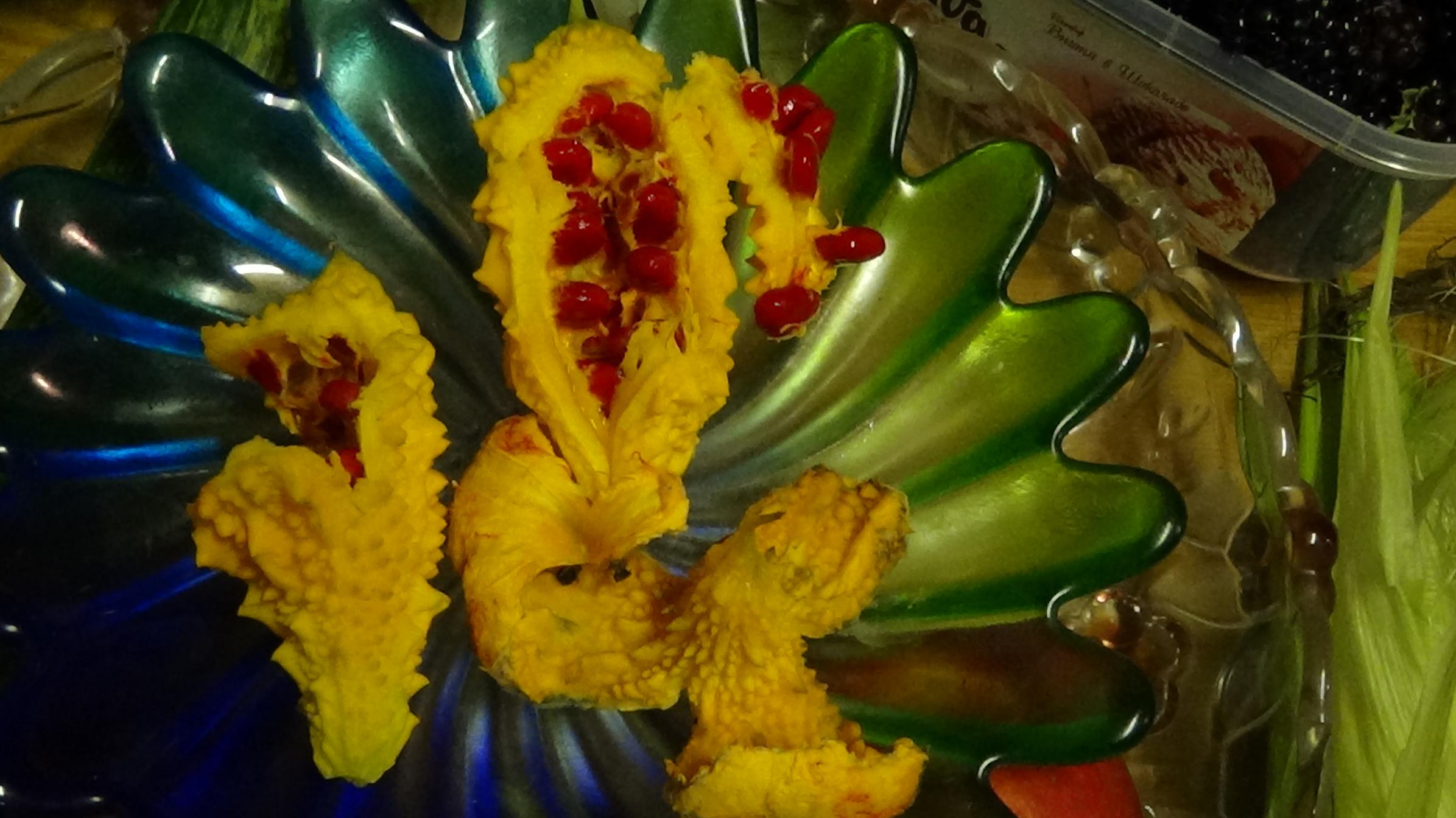 Нелли, момордику узнала сразу, а вот в баночке - решила. что икра черная для котят :-[, по-о-о-том рассмотрела. что это ежевика :niam:
