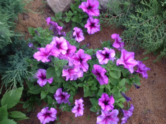 А Северная красавица была чахлая все время,а тут вдруг как рванула за неделю...Ее догоняет Аурия...Но это только цветут пока...А завязали Каспар,Берберана,Красная шапочка,Пинк Парадайз,или Пионер,ну не помню в общем ,какой-то Пинк...И еще ампельные,как горошки висят прям на улице...может это вообще черри какие-нибудь?