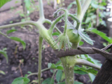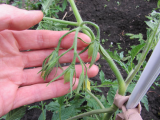 В том-то и дело, что в теплице кроме Июньского больше никаких завязавшихся помидорок нет  :dnt: Почти все цветут или вот-вот зацветут, а в ОГ уже есть маленькие помидорки. У Черной сосульки в теплице вообще первая кисть сгорела под укрывным (в углу посажена) и отвалилась  :( :-[