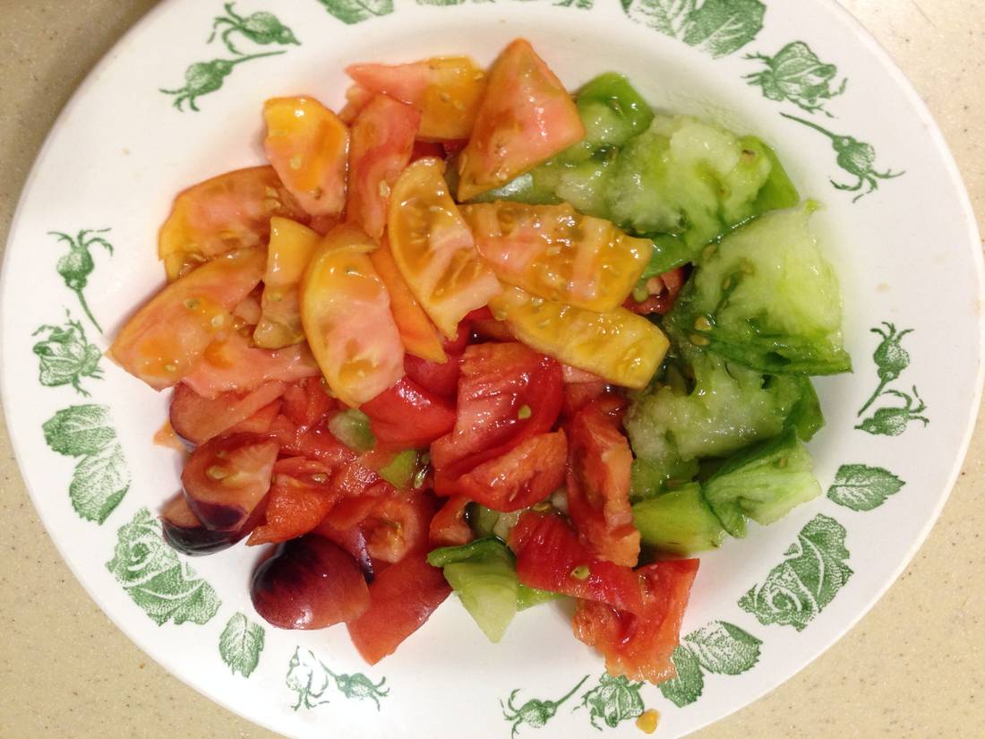 накрошила салатик из своих помидорок! пусть и не как летом но все равно вкуснота! у меня даже "Болото" долежало, ничего, нормально, вкус не сильно пострадал :)