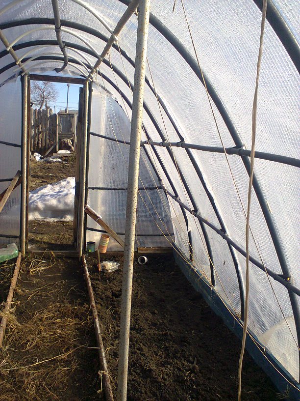 Да, тепличкой уже пользовались.Для индетов у меня есть высокая теплица из рам,крыша п/к.А в этой были перцы,баклы и деты(как раз до крыши).Если что-то переделывать,то разбирать надо- железные трубы варить можно п/э подплавить( я так думаю) да меня и так пока устраивает :),еще один парничек-солянка есть( крыша арм пленка, стены стекло+бутылки п/э+арм.пленка)- это самое первое строение этого рода :D