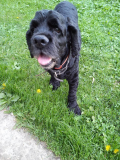 Очень послушный, все процедуры переносит очень спокойно. Из щенка еще не известно кто получится, а здесь очень спокойный, умный и доброжелательный пес.