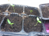 Перчики сеяла в несколько заходов, поэтому пока не все проросли,а некоторые уже выпустили по паре листочков