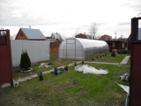 Вот она, моя красавица 3х10 метров, с 5-ю форточками с автоматами, с шагом между дугами 65см!  :mail2: К этим двойным дугам удобно подвязывать будет :)