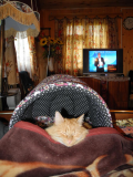 Я пока по прежнему у кота в швейцарах, ходить туда-сюда по дому и за мной по пятам и подвывать под любой закрытой дверью-его любимое занятие  :D А двери закрываю, чтобы тепло из дома не выпускать, у нас холодная пасмурная неделя с дождями наступила, масляный обогреватель почти постоянно включен. Форточкой пока не научился пользоваться, как я его туда не засовываю  ;D