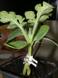 Таня, и девочки привет! Таня хочу рассказать что получилось у меня :),  первый эксперимент: посевы одновременно арбуз и лагенарии, (как всходили рассказывала выше) 13 января, прививка 07 февраля, у растюшек было по два настоящих листа, на 5 день  11, 12, 13, понемногу пережимала стебель арбузика, 14 вечером его обрезала, утром привитое растение повесило уши, одела пакет стоял в пакете до 22, листочки завяли но изнутри стали нарастать новые, пакет сняла опять стали вянуть, развернула, место прививки оказалось там раздавлен прилично стебель лагенарии, мучить не стала выбросила.