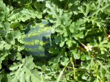 Сглазила я свой 1й завязавшийся арбузик: не растёт и уже пятна на нём. :(