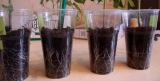 Ларис, корни тоже одинаковые.  Если повертеть стаканчики, то примерное количество корней - абсолютно одинаковое. Вот я и думаю - заморачиваться мне с подкормками для основной партии рассады или нет.  На фото, где декабрьские помидорки, разница с январскими - месяц, а они не очень и выше. И зачатки кистей появились.  В них - 2 горошки суперфосфата в каждом стаканчике и всё, больше ничем их не кормлю.